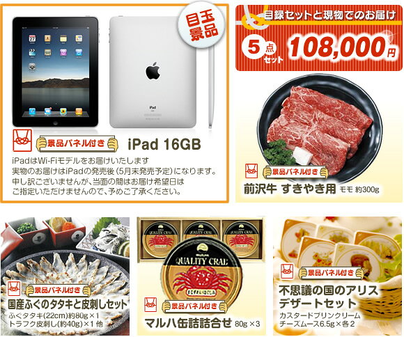 特急便!景品5点セット【目玉景品:iPad 16GB 他4点】